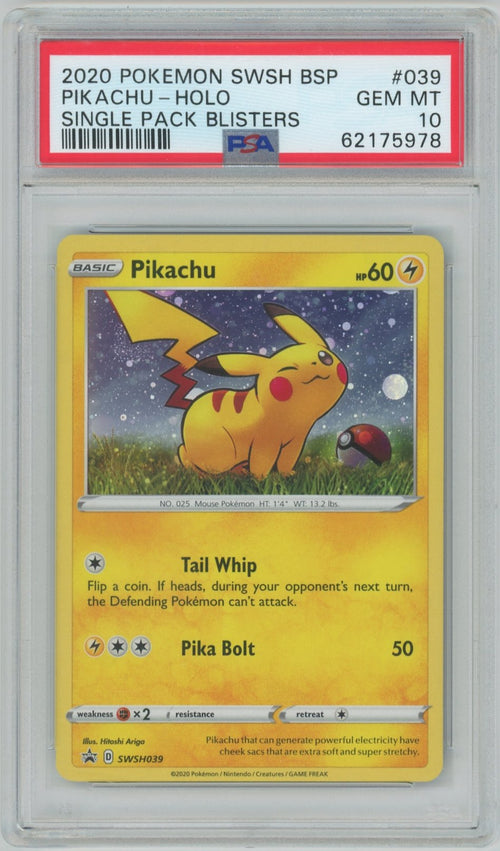 2020 Pokémon Swsh Black Star Promo #039 Pikachu - Holo Single Pack Blisters (PSA 10 GEM MINT)